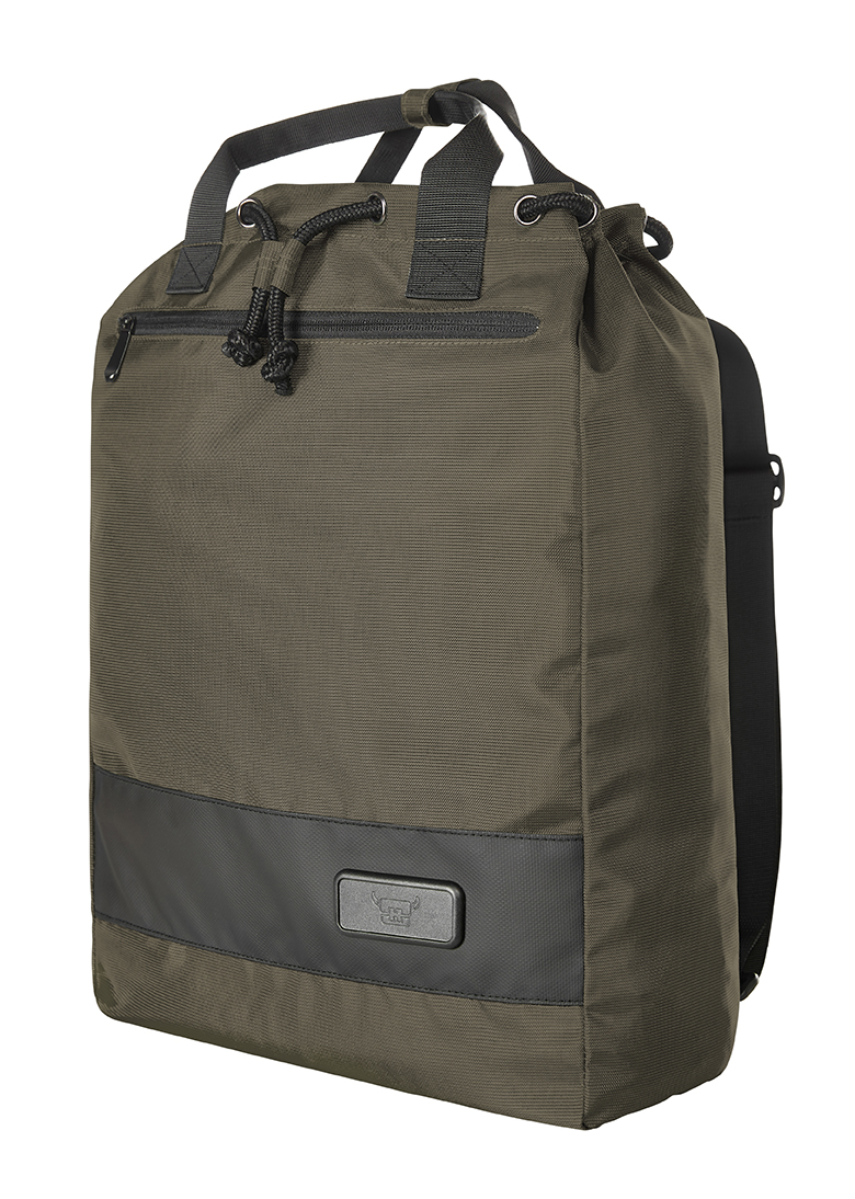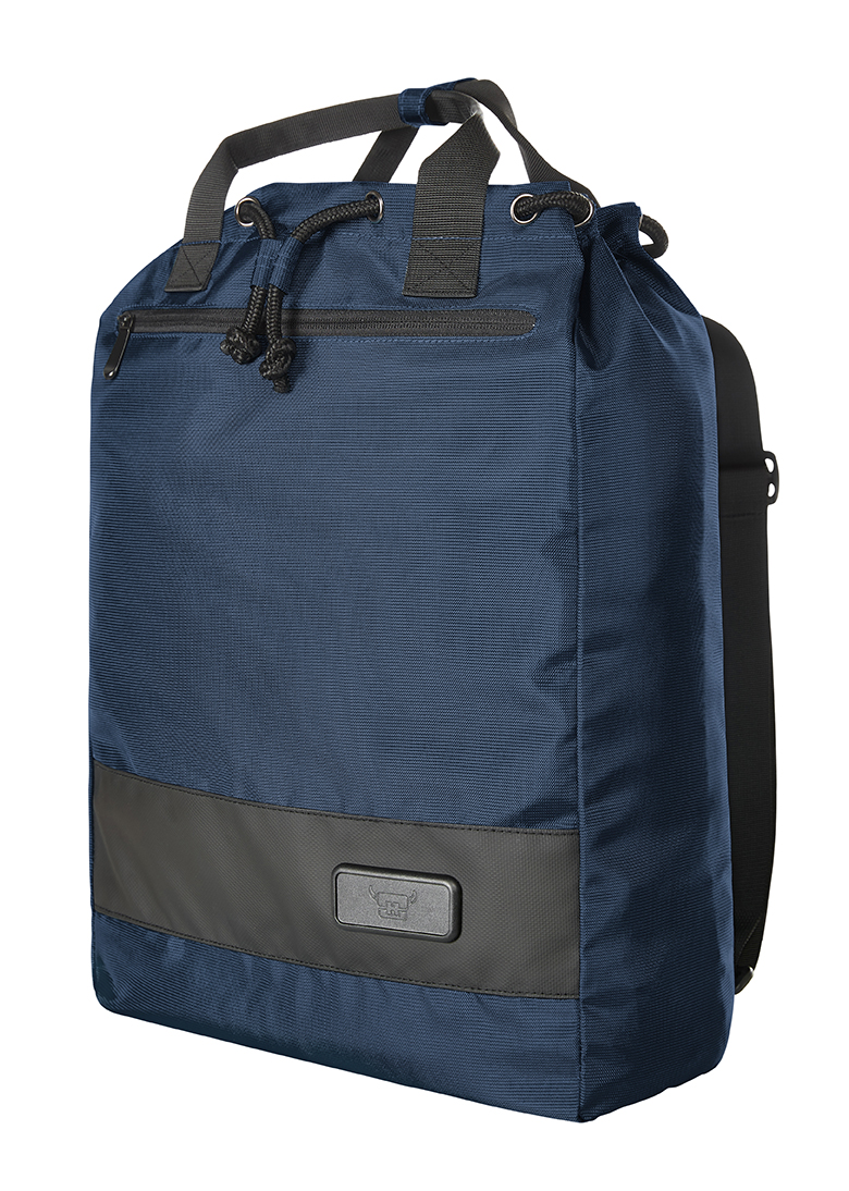 moderní nákupní batoh s kontrastními proužky; štítek HFL® pro vaše logo; hlavní přihrádka s uzavřením ozdobnou šňůrou a dodatečným uzavřením patentkou, velká přední kapsa na zip; plochá kapsa uvnitř; držadla s manžetou s patentkami, délkové nastavitelný systém popruhů